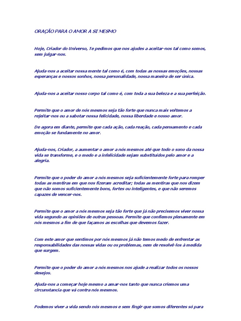 Oração Para O Amor A Si Mesmo https://es.scribd.com/document/91793353/ORACAO-PARA-O-AMOR-A-SI-MESMO