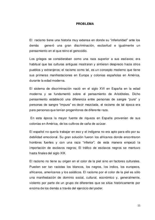 Proyecto De Investigacion El Racismo https://es.slideshare.net/presentacionaguacatal/proyecto-de-investigacion-el-racismo