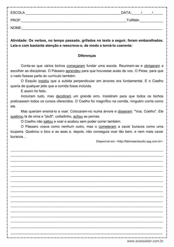 Atividade De Português Verbos No Tempo Passado 7º Ano https://www.acessaber.com.br/atividades/atividade-de-portugues-verbos-no-tempo-passado-7o-ano/