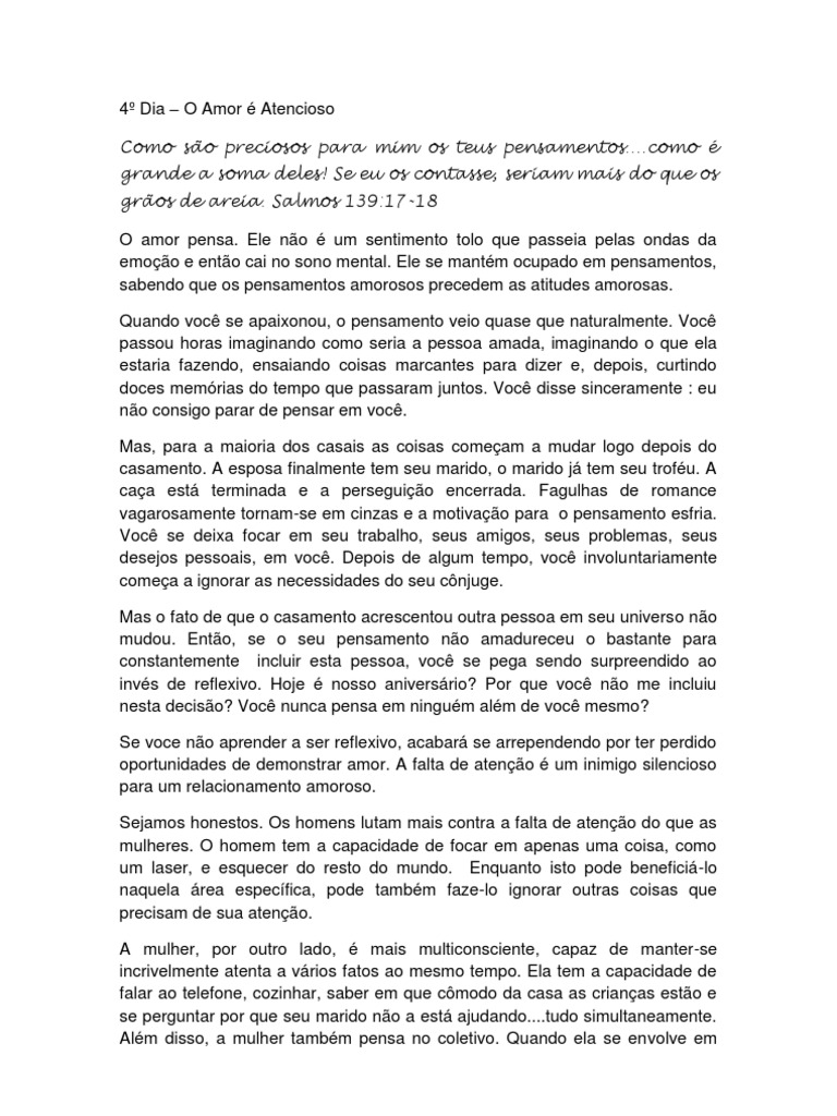 4º Dia O Amor é Atencioso Pensamento Amor https://pt.scribd.com/document/157701831/4%C2%BA-Dia-O-Amor-e-Atencioso