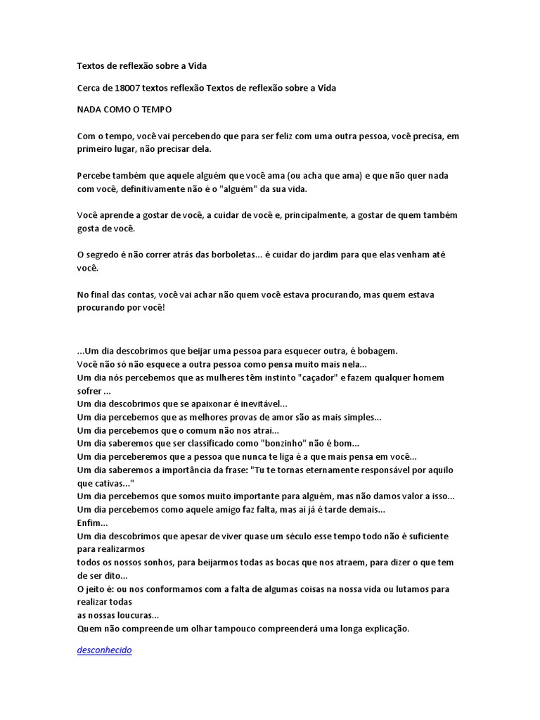 Textos De Reflexão Sobre A Vida Amor Tempo https://pt.scribd.com/document/220026664/Textos-de-Reflexao-Sobre-a-Vida