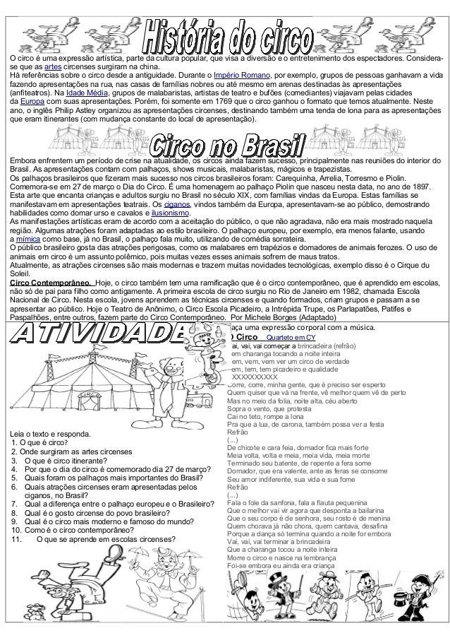 Dia 15 de março é dia internacional do circo já no dia 27 é comemorado o dia do circo no brasil em homenagem a um palhaço brasileiro. 1 clique sobre a imagem com o botão direito do mouse. São mais de 10 atividades sobre interpretação de texto com o tema dia do circo que é comemorado no dia 27 de março são varias questões que as crianças irão adorar interpretar todos os exercícios foram criados para despertar o raciocínio logico dos estudantes da educação infantil.