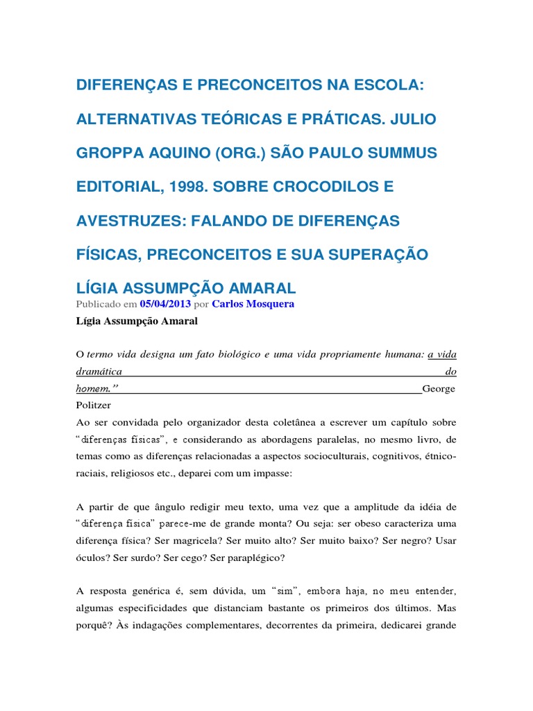Texto 19 Diferenças E Preconceitos Na Escola Aquino Jg Ei https://es.scribd.com/doc/170308213/Texto-19-DIFERENCAS-E-PRECONCEITOS-NA-ESCOLA-Aquino-J-G-EI