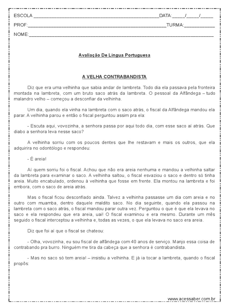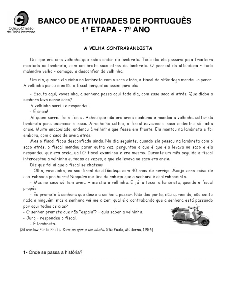 A Velha Contrabandista Atividade 6ºano https://pt.scribd.com/document/381828441/A-Velha-Contrabandista-Atividade-6%C2%BAano