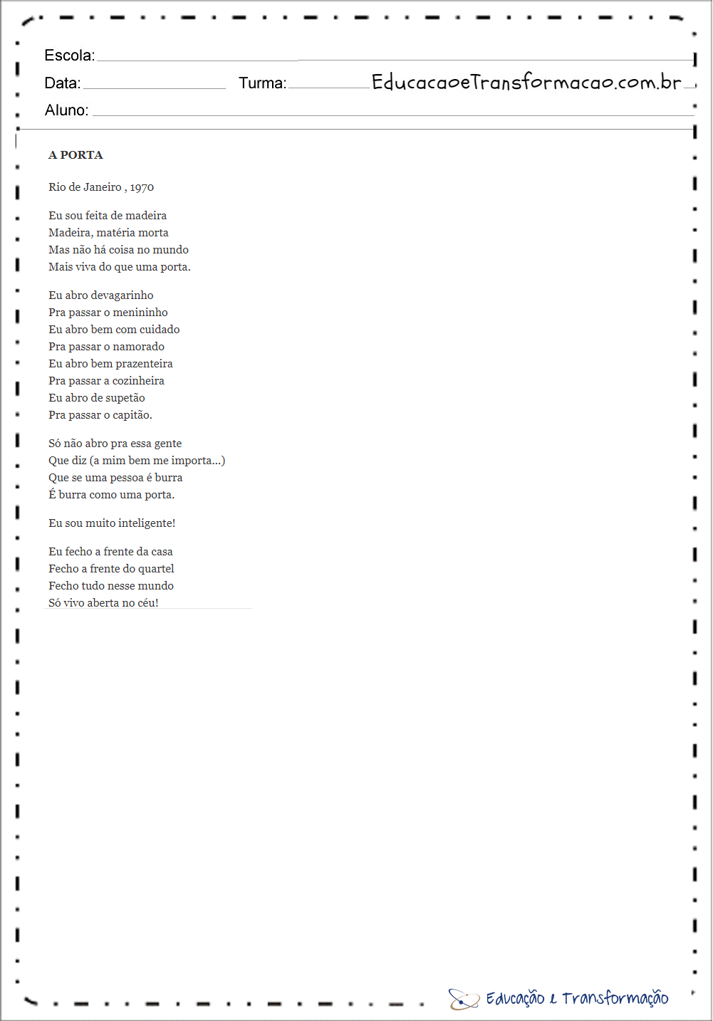 Poemas De Vinícius De Moraes A Porta Educação E Transformação https://www.educacaoetransformacao.com.br/poemas-de-vinicius-de-moraes/poemas-de-vinicius-de-moraes-a-porta/