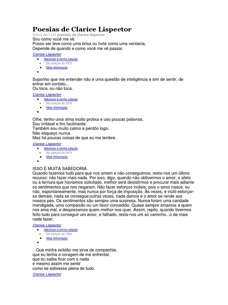 Poemas Eou Poesias Clarice Lispector Notï½cias O Melhor Do https://www.pinterest.com/pin/257760778653036941/